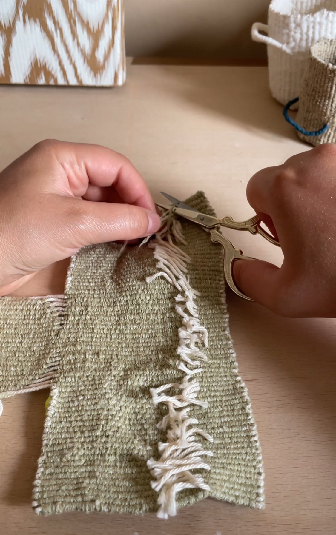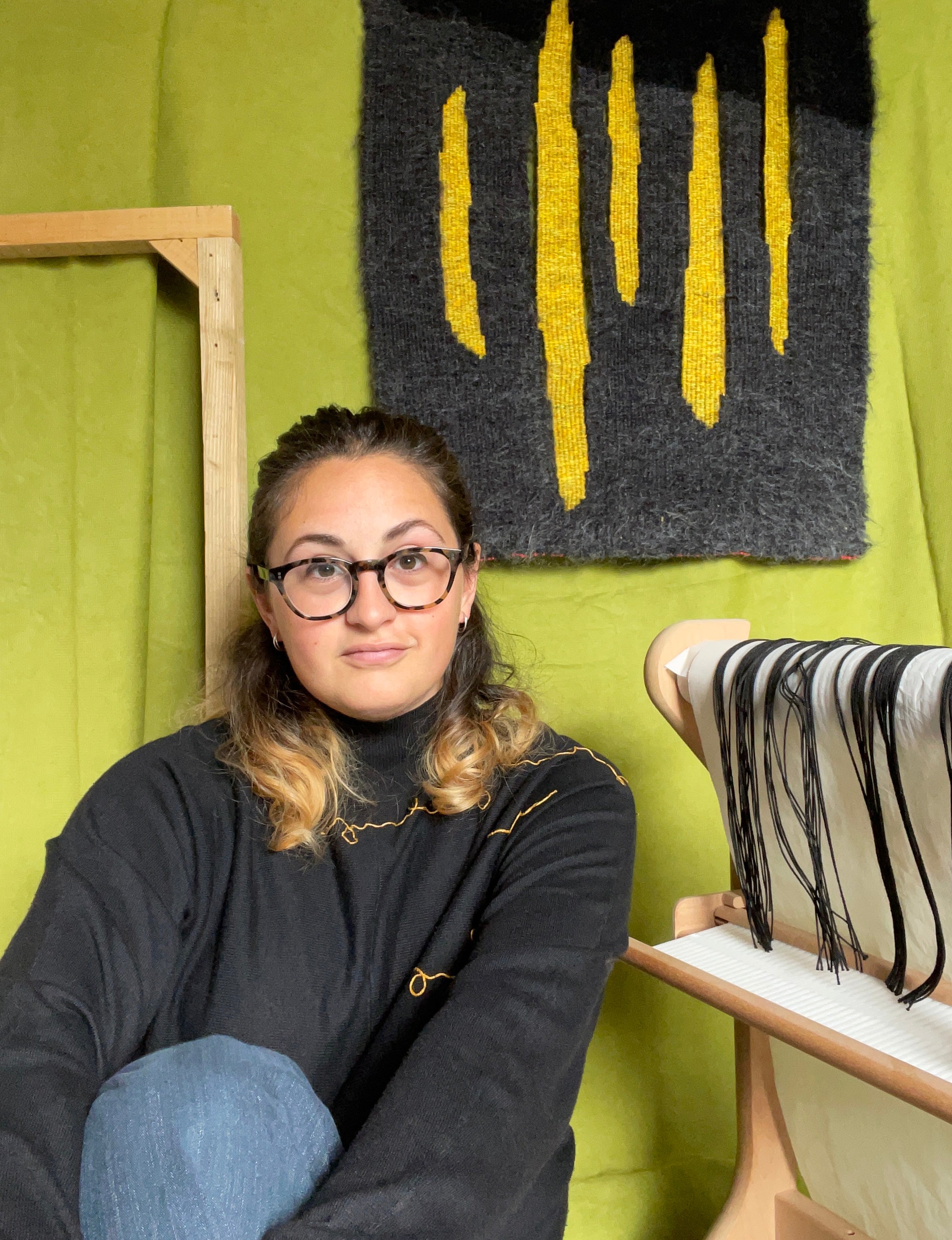 A self-taught weaver with a background in printmaking.