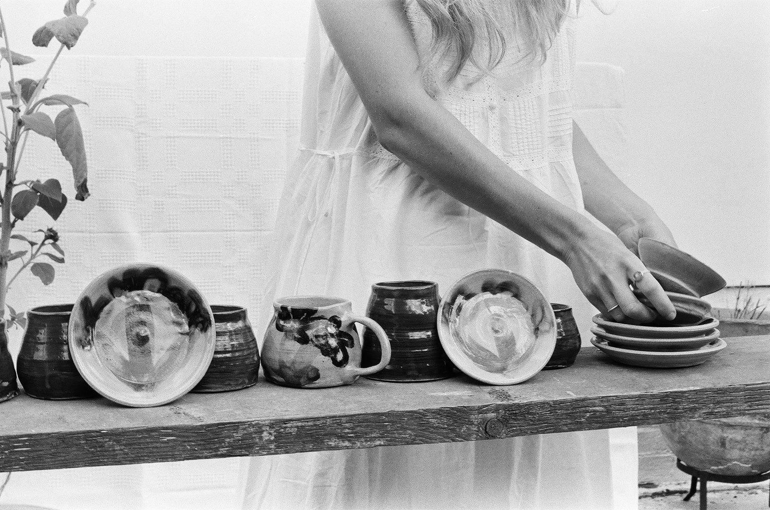 She makes functional wares such as mugs, plates and vases using warm-toned stoneware clay.